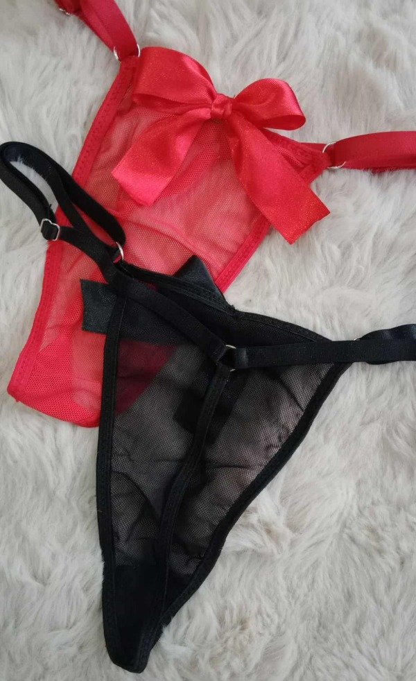 Tanga hilo regulable de microtul con moño en frente